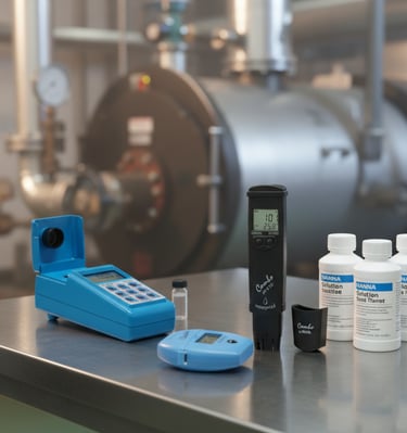 El Kit de Análisis Rápido permite realizar determinaciones inmediatas de los principales parámetros químicos en aguas industriales, tales como dureza total, cloruros, alcalinidad y sulfitos, mediante métodos titulométricos simples y precisos.